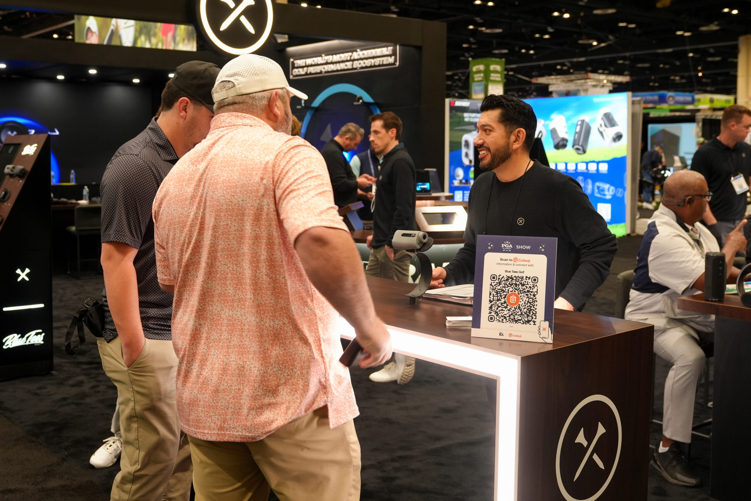 Previous Image Next Image PGA Show ORLANDO, FL – JANUARY 22: Attendees and exhibitors at the Blue Tees Golf booth during the PGA Show at Orange County Convention Center on Thursday, January 22, 2026 in Orlando, Florida. (Photo by Darren Carroll/PGA of America)