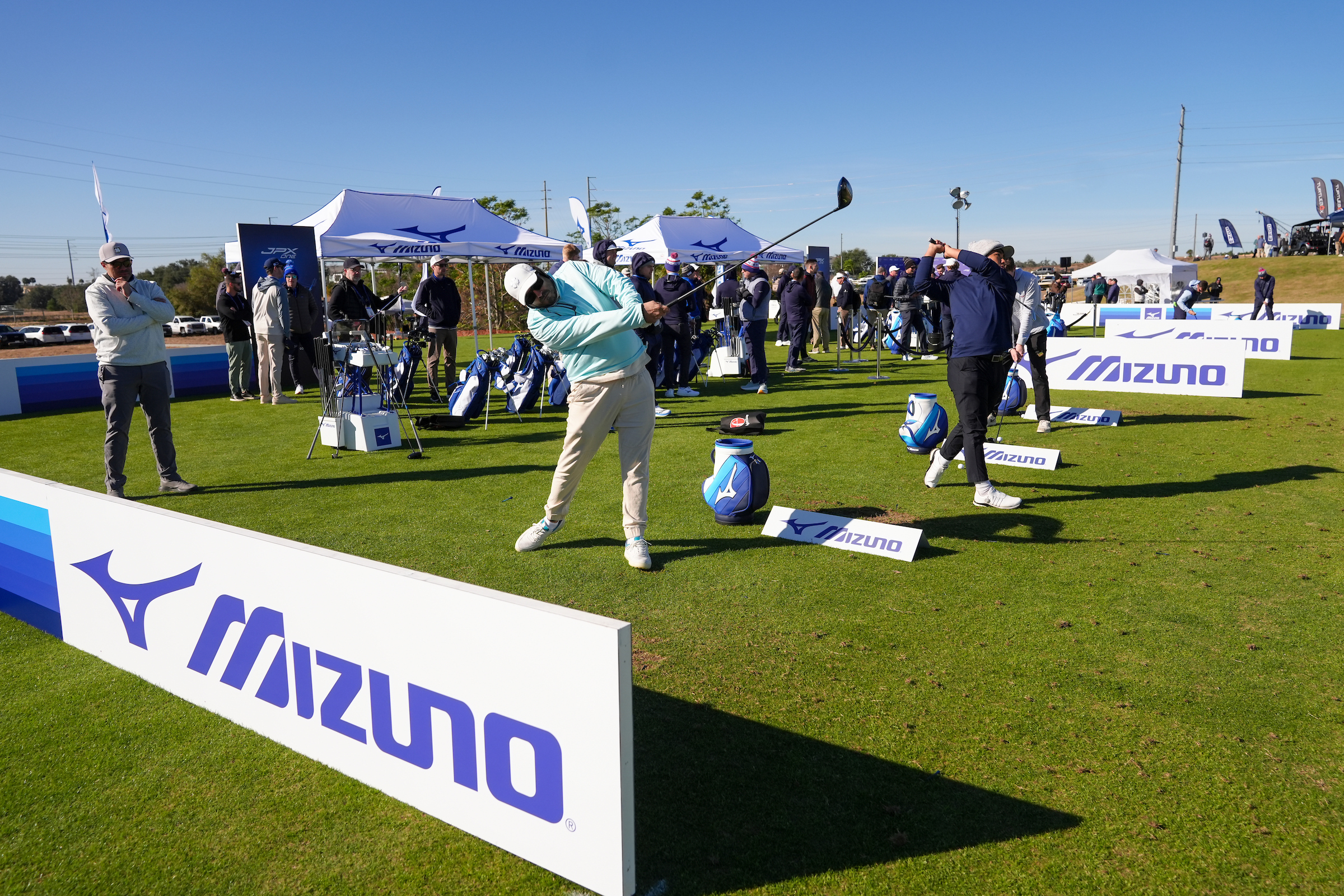 WINTER GARDEN, FL – JANUARY 20: Attendees hit their shots at the Mizuno driving range activation during the PGA Show Demo Day at Orange County National Golf Center on Tuesday, January 20, 2026 in Winter Garden, Florida. (Photo by Darren Carroll/PGA of America)