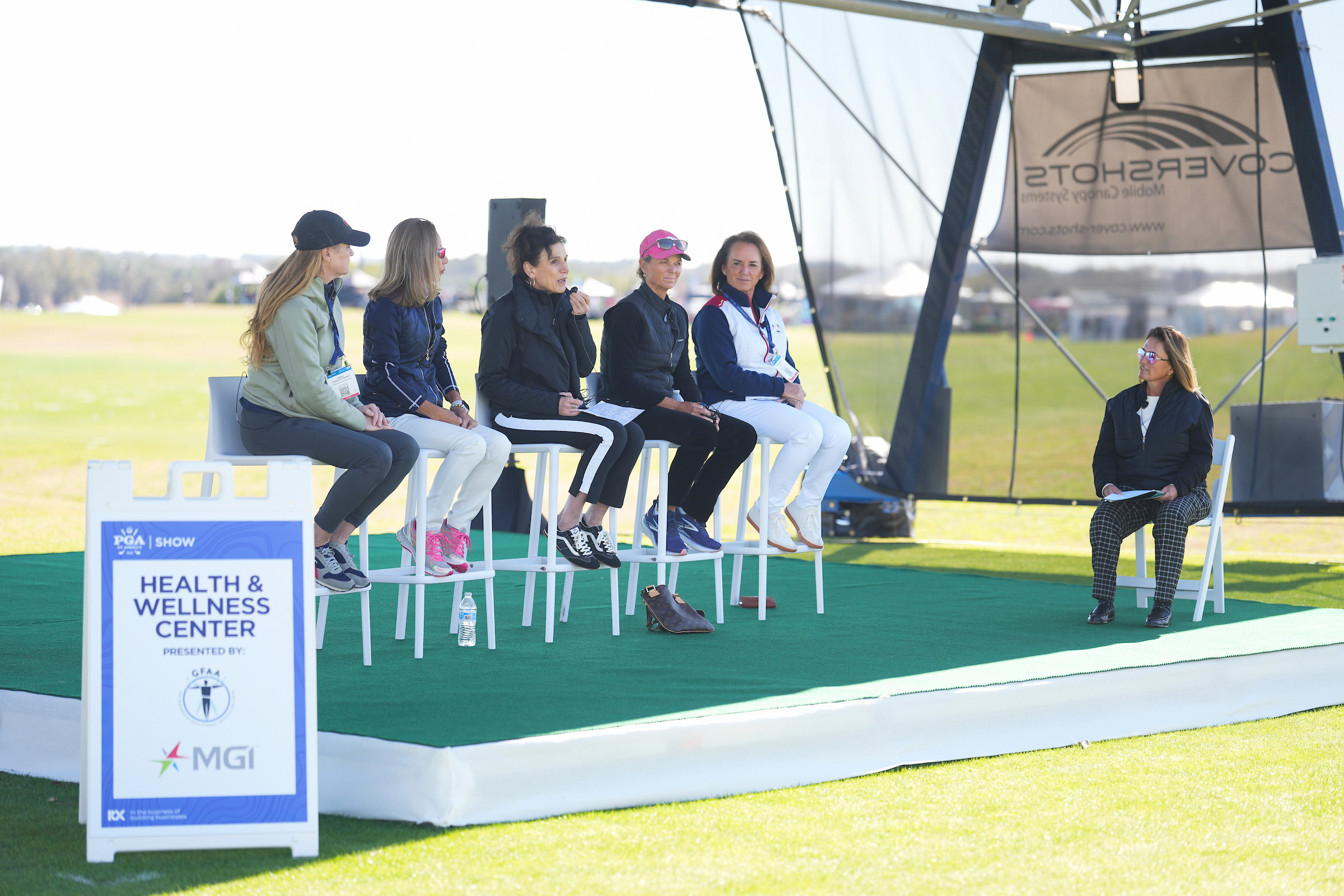 WINTER GARDEN, FL – JANUARY 20: Karen Palacios-Jansen, LPGA, Kuniko Tasahara Tischler, PGA, Joanne Foreman, LPGA, Kellie Stenzel, PGA, LPGA, Christie Quinn, LPGA, and Kelley Brooke, LPGA, speak on stage for “The LPGA Way: Building Better lessons, Stronger Relationship and Happier Golfers” seminar during the PGA Show Demo Day at Orange County National Golf Center on Tuesday, January 20, 2026 in Winter Garden, Florida. (Photo by Darren Carroll/PGA of America)