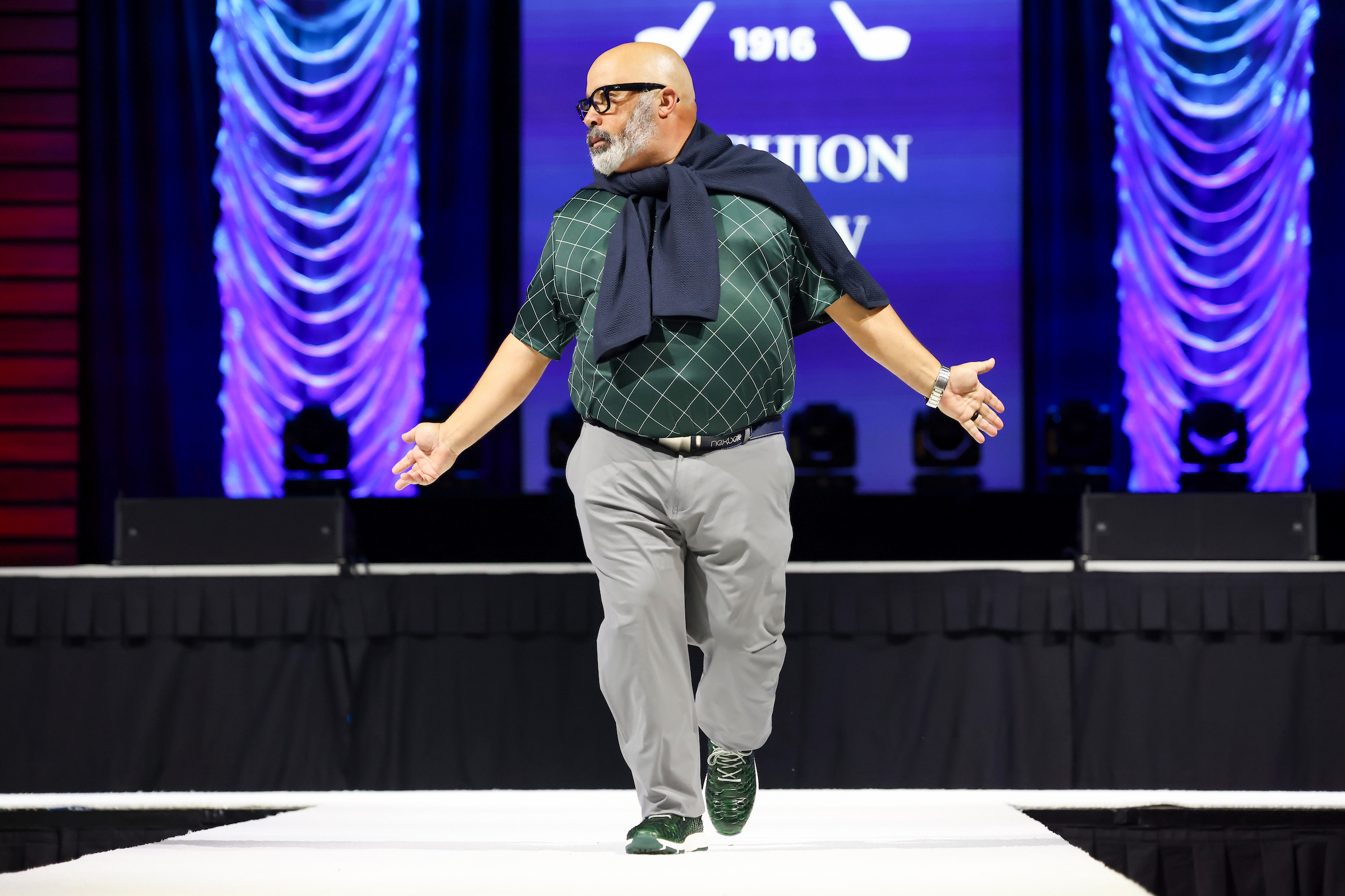 ORLANDO, FL – JANUARY 21: Comedian and ESPN Analyst Michael Collins poses and walks the runway at the PGA Show Fashion Show at Orange County Convention Center on Wednesday, January 21, 2026 in Orlando, Florida. (Photo by Scott Halleran/PGA of America)