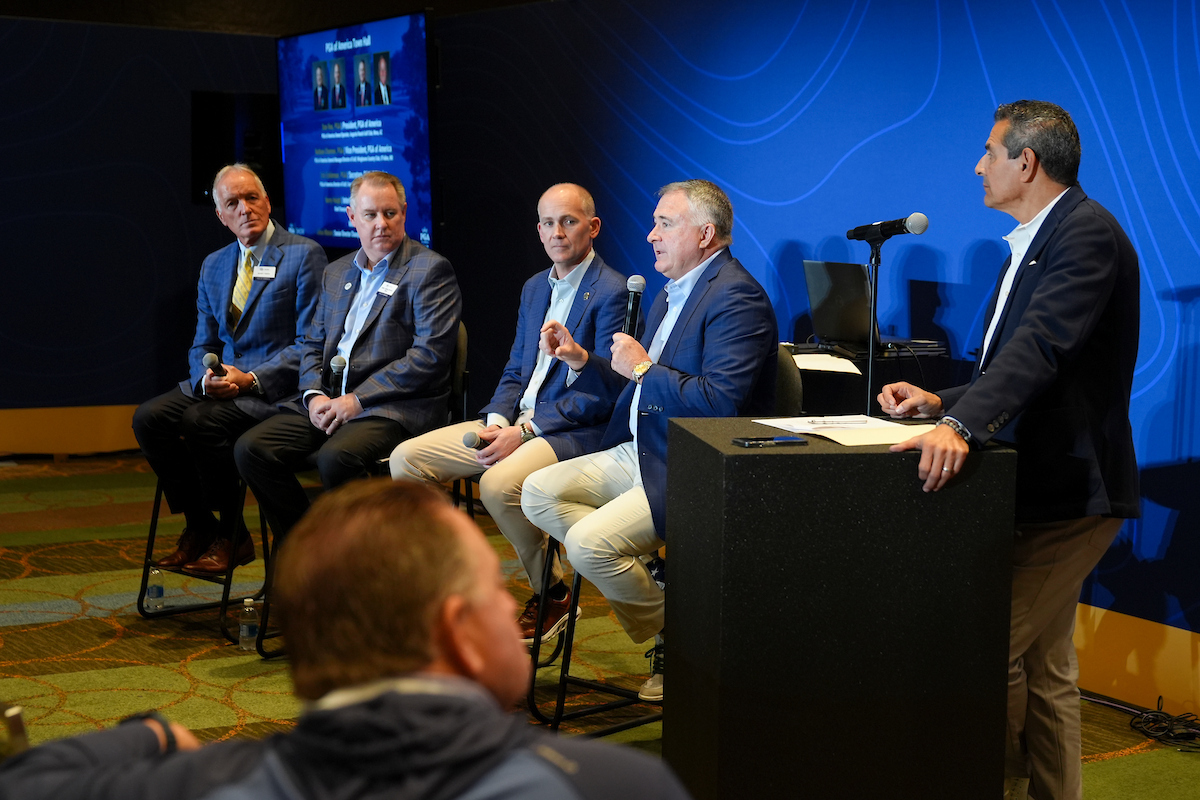 ORLANDO, FL – JANUARY 22: Chief Championship Officer at the PGA of America Kerry Haigh, PGA of America Secretary Eric Eshleman, PGA of America Vice President Nathan Charnes, PGA of America President Don Rea, and moderator and PGA’s Senior Director of Public Awareness & External Relations Julius Mason speak to attendees at the PGA of America Town Hall during the PGA Show at Orange County Convention Center on Thursday, January 22, 2026 in Orlando, Florida. (Photo by Darren Carroll/PGA of America)