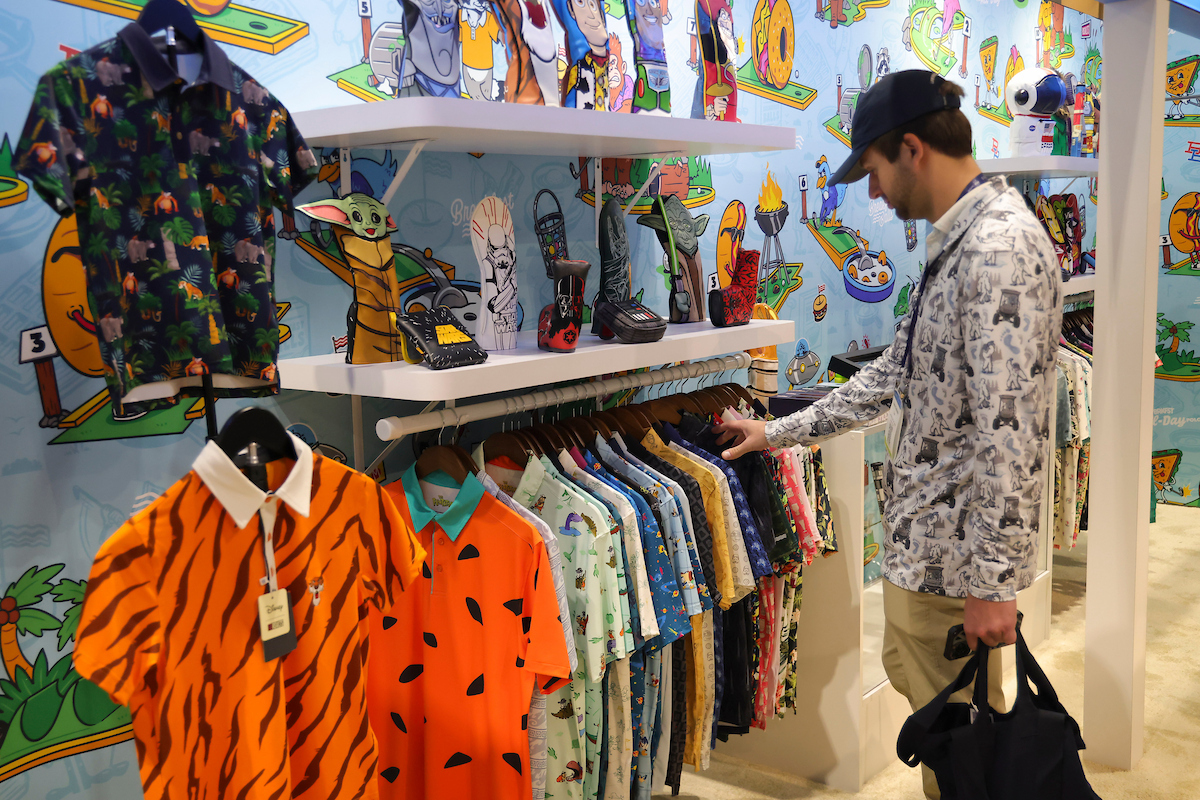 Previous Image Next Image PGA Show ORLANDO, FL – JANUARY 23: An attendee checks out custom Disney golf apparel during the PGA Show at Orange County Convention Center on Friday, January 23, 2026 in Orlando, Florida. (Photo by Scott Halleran/PGA of America)